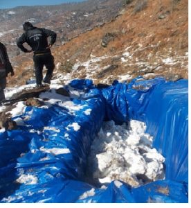 Action Research: In 2014, the District Agriculture Development Office (DADO), conducted focused group discussion with about 600 farmers to prepare the Agriculture Development Plan of Jumla district. This was done in collaboration with different organizations like Forest Action, LI-BIRD, World Vision and Italian Foundation. The idea was to find whether the snowfall during the winter season (Dec-Feb) could be collected in Silpolin plastic pond and water be generated after melting.